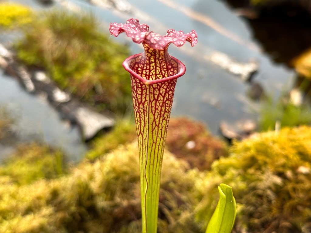 C’est dans ces milieux détrempés, pauvres en minéraux, que les plantes carnivores trouvent leur épanouissement. Mesurant aujourd’hui environ 30 centimètres, leur taille doublera pour atteindre les 60 à 70 centimètres l’année prochaine, si elles s’adaptent à leur nouvel environnement. Considérées comme invasives dans le Jura, la plantation de ces espèces dans le jardin de l’Arc Jurassien est une expérimentation maîtrisée et contrôlée.