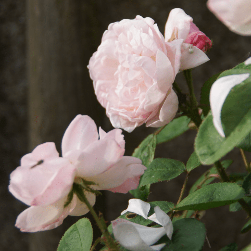 Le rosier ancien Mousseux, Mousseline arbore des fleurs doubles en coupe rose pastel avec un parfum envoûtant très présent de résine de pin. Les pétales s’ouvrent en un délicat plissement chiffonné laissant apparaître les étamines. Ce rosier offre une jolie remontée si on lui ôte les premières roses fanées. (En savoir plus)